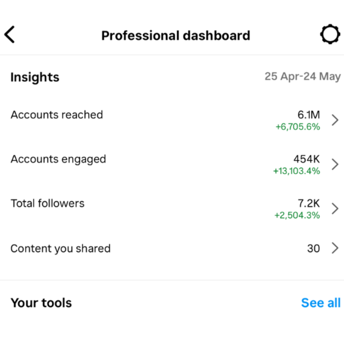 Built a content strategy from scratch for a brand launch. Consistent reels + story engagement drove organic growth with consistent results like this.